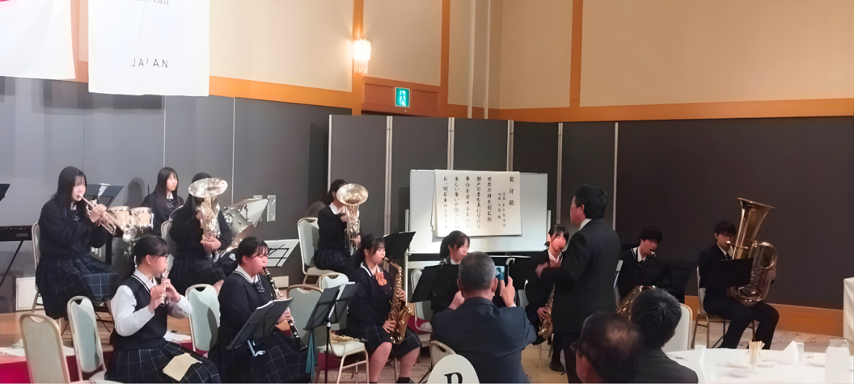 演奏では、会場を包み込むような美しいハーモニーが響き渡り、出席者からは自然と笑顔や拍手が広がりました。音楽を通じて人と人をつなぎ、場の雰囲気を明るくしてくれる生徒の皆さんの姿がとても印象的でした。