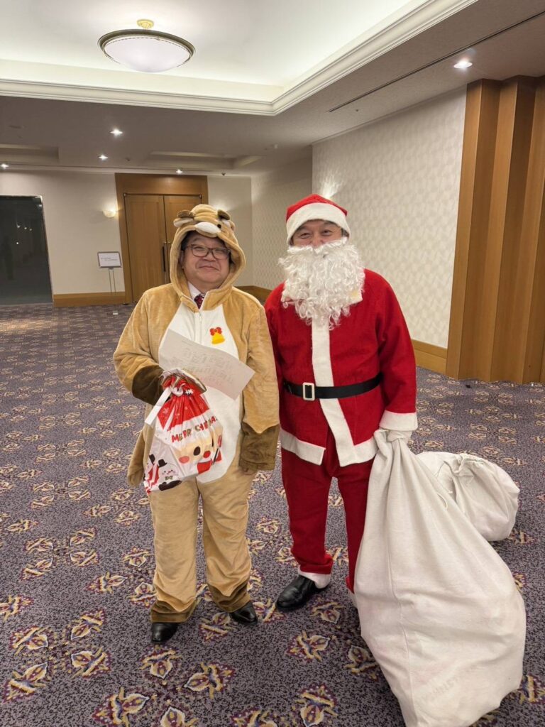 サンタクロースの登場に、子どもたちはうれしそうにプレゼントを受け取っていました。🎁 - プレゼント抽選会 & チャリティーオークション